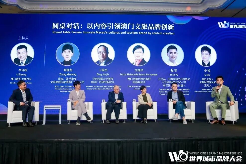 在“以内容引领澳门文旅品牌创新”对话环节,澳门特别行政区政府旅游局局长文绮华,中国传媒大学教授、国家广告研究院院长丁俊杰,主持人、中国民间文艺家协会手艺发展研究中心主任、中国匠人大会创建人赵普,著名主持人、文旅届资深玩家、策划人李锐,演员、礼学指导、文旅部国内旅游推广公益大使张晓龙五位嘉宾就澳门城市品牌建设与文旅产业发展等问题进行了深度探讨。该环节由澳门莲花卫视台长李自松担任嘉宾主持。关于澳门价值如何再发现,让更多年轻人了解和认可,大家纷纷建言献策。