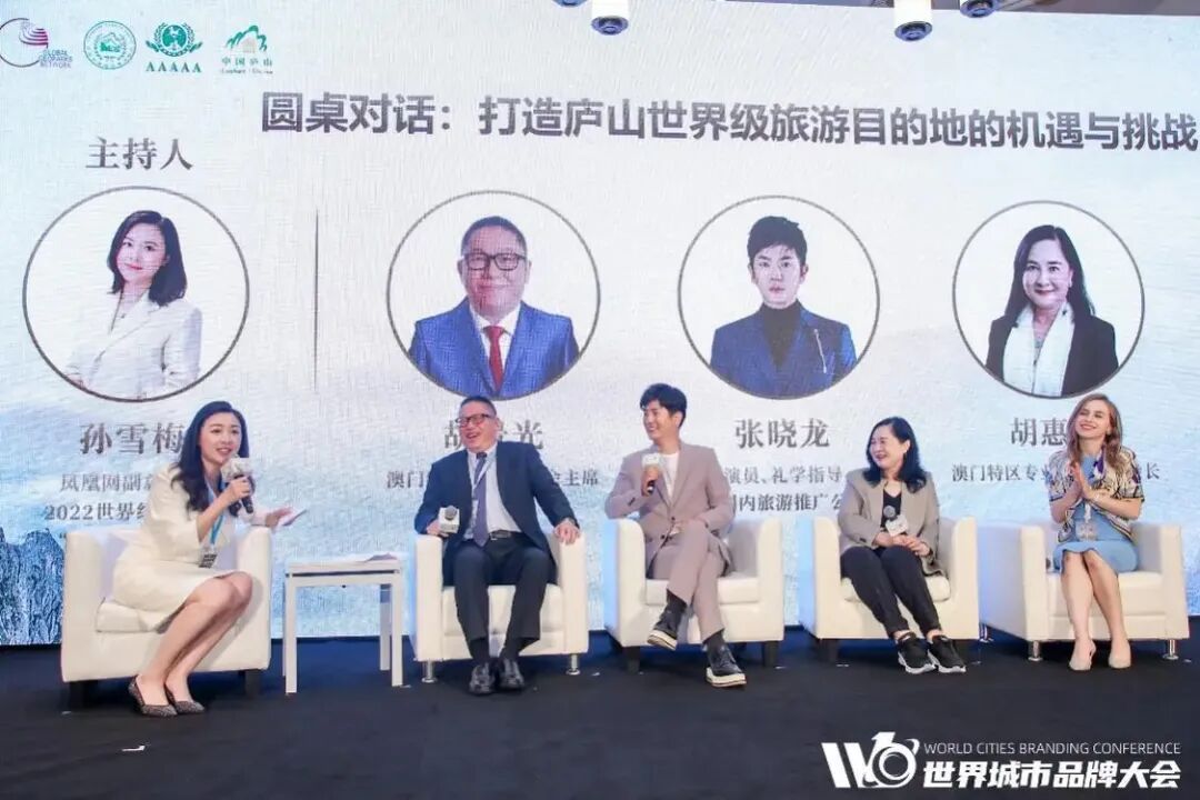 在“中国县域文旅高质量发展的机遇与挑战”圆桌对话环节,贵州省织金古城文化旅游发展有限公司董事长刘江明、广州市明道文化科技集团股份有限公司董事长刘云辉、湖北省燕儿谷生态观光农业有限公司董事长徐志新、黑龙江省塔河县文体广电和旅游局局长都波围绕县域文旅高质量发展存在机遇与挑战以及如何应对挑战进行了深度探讨并建言献策。该环节由腾讯文旅研究院秘书长孙晖担任嘉宾主持。“城市推介”时间:庐山市向海内外游客发出“悠”游庐山邀请,为港澳地区游客送上特别优惠好礼大会期间,庐山市向海内外游客发出“悠”游庐山邀请,以推介会形式完成了在国际平台的一次精彩亮相。庐山管理局局长、庐山市市长王斌,澳门中联办经济部副部长杨皓、澳门特别行政区政府旅游局局长文绮华,国家广告研究院院长丁俊杰,国家文化和旅游部“十四五”规划专家委员会委员张辉,演员、礼学指导、中国艺术研究院教授、文化旅游部旅游推荐官张晓龙,澳门旅游学院副教授叶嘉仪,凤凰网CFO吕靖以及大湾区文旅机构领导、行业专家、文旅品牌负责人及境内外数十家媒体出席。