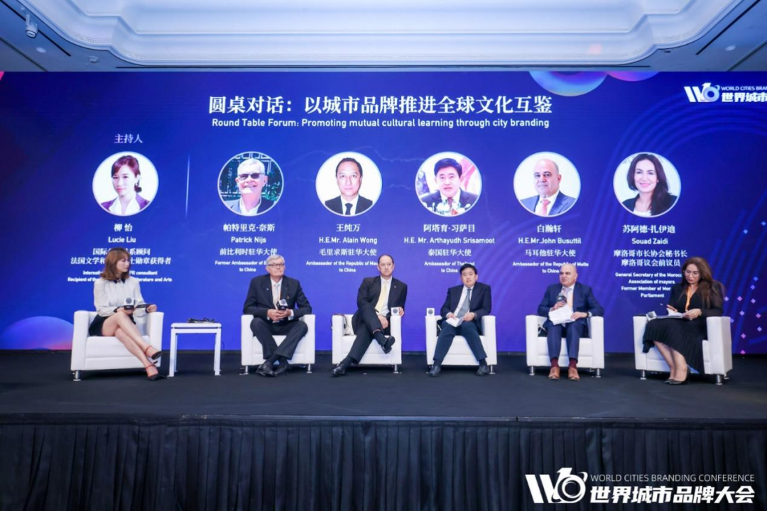 泰国驻华大使阿塔育·习萨目,毛里求斯驻华大使王纯万,马耳他驻华大使白瀚轩,比利时前驻华大使、终身荣誉大使帕特里克·奈斯,摩洛哥市长协会秘书长、摩洛哥议会前议员、拉巴特市前副市长苏阿德·扎伊迪,就中外文化互鉴展开友好交流,开启了“以城市品牌推进全球文化互鉴”主题圆桌对话,嘉宾们一致认为,国与国之间的文化及经济交流互动至关重要,而与中国的交往更是十分必要,在国际交流中,旅游业是很重要的形式依托。站在城市品牌的角度,高度提炼的文化特色就是城市品牌之魂,深度挖掘城市文化,民族文化,以创新思维及方式加以传播,展现城市魅力的同时,也将激发城市品牌、文旅品牌发展新动能。